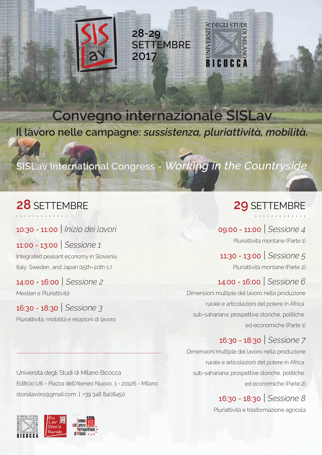 Convegno Internazionale SISLav "Il lavoro nelle campagne: sussistenza, pluriattività, mobilità" (Milano, 28-29 Sett. 2017)
