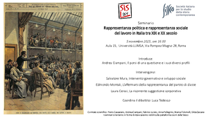 Seminari "Rappresentanza politica e rappresentanza sociale del lavoro in Italia tra XIX e XX secolo" (5 e 21 novembre)