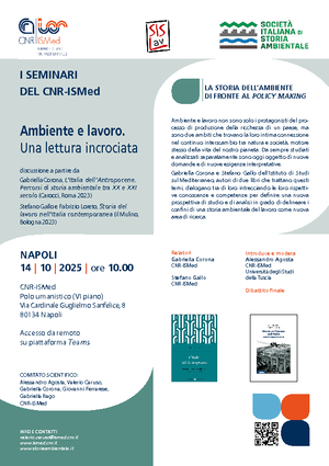 Discussione promossa dal CNR ISMed, dalla SISLav e dalla SISAm a partire dai volumi di Gabriella Corona, L’Italia dell’Antropocene. Percorsi di storia ambientale tra XX e XXI secolo (Carocci, Roma 2023) e di Stefano Gallo e Fabrizio Loreto, Storia del lavoro nell’Italia contemporanea (il Mulino,...