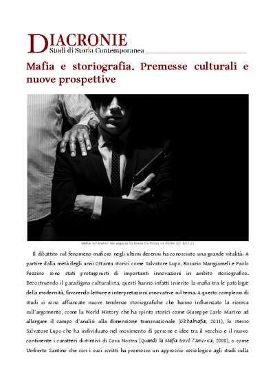 La rivista Diacronie. Studi di Storia contemporanea invita a proporre dei contributi sul fenomeno mafioso, che, negli ultimi decenni, ha conosciuto una grande vitalità ed è stato posto al centro delle nuove tendenze storiografiche.