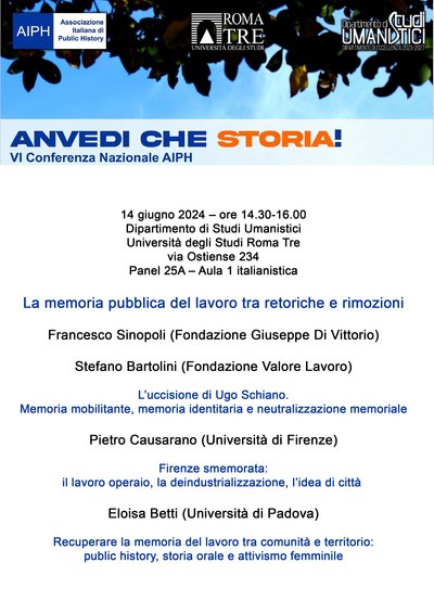 Conferenza AIPH 2024 "La memora pubblica del lavoro tra retoriche e rimozioni" (Roma, 14 giugno 2024)
