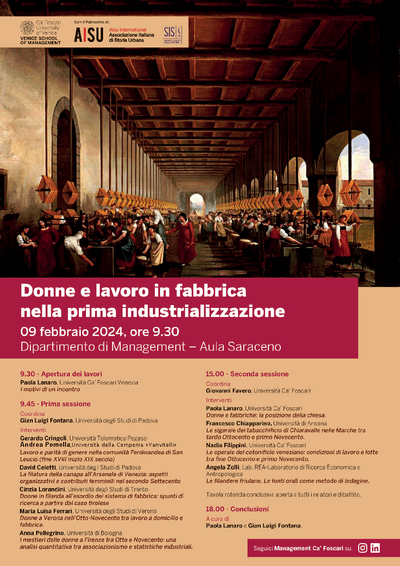 Convegno "Donne e lavoro in fabbrica nella prima industrializzazione" (Venezia, 9 febbraio 2024)