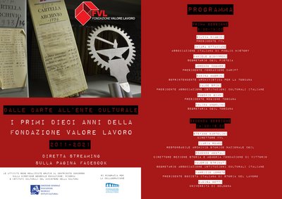 Il 17 settembre la Fondazione Valore Lavoro festeggia i 10 anni di attività. Con l’occasione la Fondazione ripercorrerà i dieci anni di attività con un convegno di riflessione sul lavoro culturale. La giornata, articolata in due sessioni, sarà trasmessa in streaming sulla pagina Facebook della Fondazione.