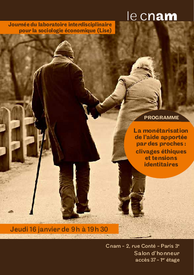Si terrà il 16 gennaio 2020 a Parigi, presso il Salon d'honneur del Centro Cnam, la giornata di studi La monétarisation de l’aide apportée par des proches: clivages éthiques et tensions identitaires.
