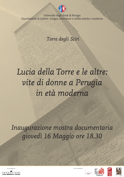 Il Dipartimento di Lettere-Lingue, letterature e civiltà antiche e moderne dell'Università degli Studi di Perugia organizza un seminario di studi storici a Perugia il 16 e il 17 maggio 2019 sul tema "Libere di agire nel secolo": spazi femminili fra impegno nel mondo e reclusione in età moderna. Il 16 maggio alle 18:30 sarà inaugurata la mostra documentaria permanente Lucia della Torre e le altre: storie di donne a Perugia in età moderna presso il Conservatorio della Torre degli Sciri.