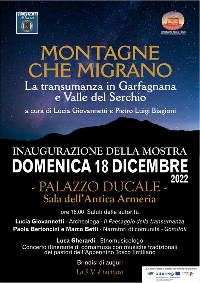 Il 18 dicembre 2022 si inaugura a Lucca la mostra "Montagne che migrano. La transumanza in Garfagnana e Valle del Serchio" a cura di Lucia Giovannetti e Pietro Luigi Biagioni.