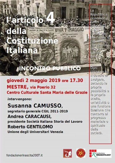 Incontro pubblico sull'articolo 4 della Costituzione Italiana (Mestre, 2 maggio 2019)
