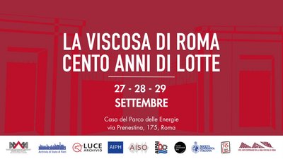– Sabato 28 settembre dalle 9.00 alle 18.00, si terrà il convegno “La Viscosa di Roma: cento anni di lotte. Appunti per la storia dell’ex SNIA, dalla fabbrica al Monumento Naturale” con interventi di numerosi professori, ricercatori, e con la partecipazione degli istituti: Archivio di Stato di Rieti, Archivio Storico Luce, Associazione Italiana di Public History – AIPH, Associazione Italiana di Storia Orale – AISO, Associazione Italiana per il Patrimonio Archeologico Industriale – AIPAI, Centro di Documentazione Maria Baccante, Kunstuniversität Linz, Società Geografica Italiana – SGI, Società Italiana di Storia del Lavoro – SISLav. Scarica la locandina con il programma completo della giornata.