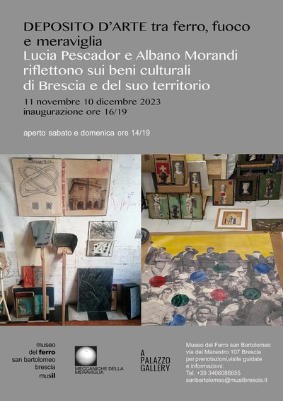 Dall’11 novembre al 10 dicembre 2023 si terrà la mostra "Deposito d’Arte tra ferro, fuoco e meraviglia" in cui Lucia Pescador e Albano Morandi riflettono sui beni culturali di Brescia e del suo territorio.