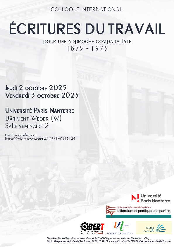 Si terrà all'Università di Paris Nanterre il convegno internazionale "Écritures de travail" il 2 e il 3 ottobre 2025.