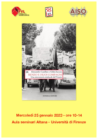 Si terrà mercoledì 25 gennaio 2023, dalle ore 10 alle ore 14, nell’Aula seminari Altana dell’Università di Firenze, la presentazione del libro "Renzo e i suoi compagni. Una microstoria sindacale del Veneto".