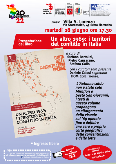 Presso Villa San Lorenzo a Sesto Fiorentino, il 28 giugno 2022 alle ore 17:30, si terrà la presentazione del volume Un altro 1969: i territori del conflitto in Italia, curato da Stefano Bartolini, Pietro Causarano e Stefano Gallo e edito per i tipi di New Digital Frontiers. Con i curatori sarà presente Daniele Calosi, segretario della FIOM CGIL di Firenze.