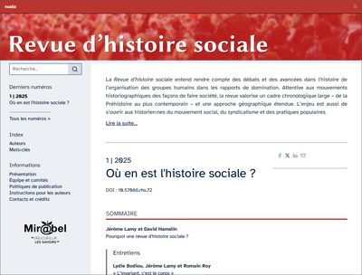 «Revue d’histoire sociale», n.1 (2025)