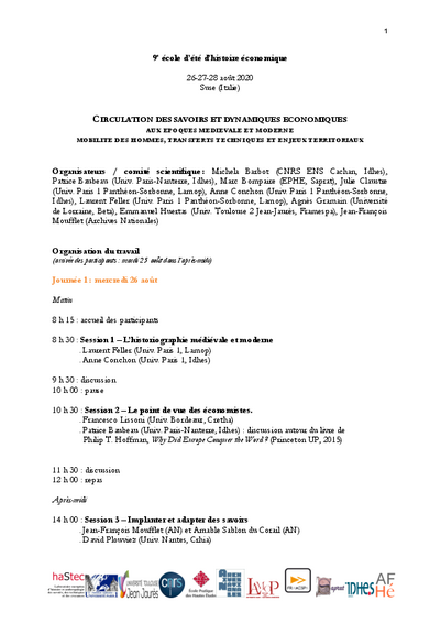 Scuola estiva "Circulation des savoirs et dynamiques économiques aux époques médiévale et moderne" (Susa, 26 - 28 agosto 2020)