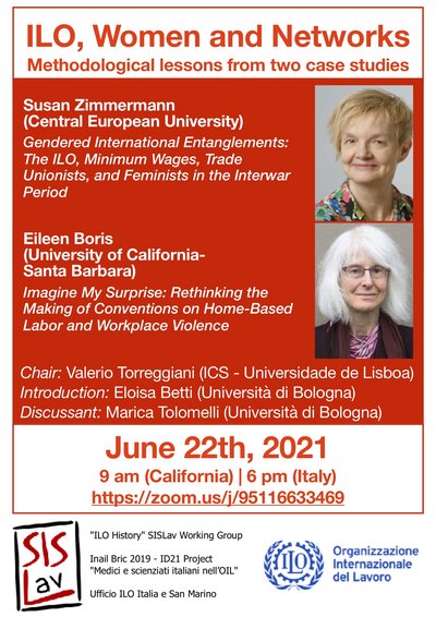 Si terrà il 22 giugno alle 18 il seminario "ILO, Women and Networks. Methodological lessons from two cases studies", cui parteciperanno Susan Zimmermann, della Central European University, e Eileen Boris, della University of California - Santa Barbara.
