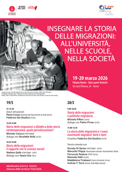 Seminario "Insegnare la storia delle migrazioni" (Torino, 19 - 20 marzo 2026)
