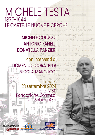 Seminario organizzato in collaborazione con il Centro culturale Michele Testa e con l’Università Popolare Michele Testa in occasione della presentazione delle carte acquisite dalla Fondazione Gramsci.