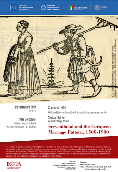 Seminario "Servanthood and the European Marriage Pattern, 1500-1900" (Padova, 23 settembre 2024)