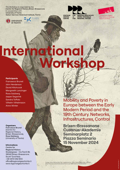 Workshop "Mobility and Poverty in Europe between the Early Modern Period and the 19th Century. Networks, Infrastructures, Control" (Bressanone, 15 novembre 2024)
